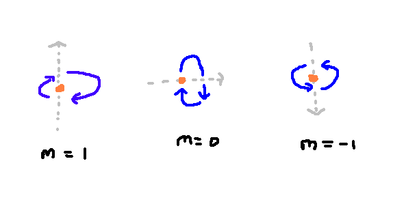 In the case of the first angular momentum level, I've drawn out each of the three states here.