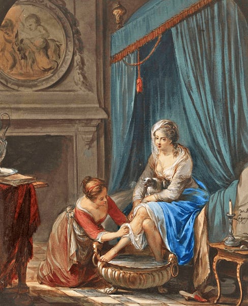 Fair to say, there is some romanticisation about lifestyle in the 18th Century, being it the period of enlightenment. Just spend a day at the east wing of the British museum! And the historical accounts of hygiene practices differ with the sweet and clean, pastel coloured romances you read about in the fiction of the time, like Mr Willoughby and his multiple baths in Austen’s Sense and Sensibility.