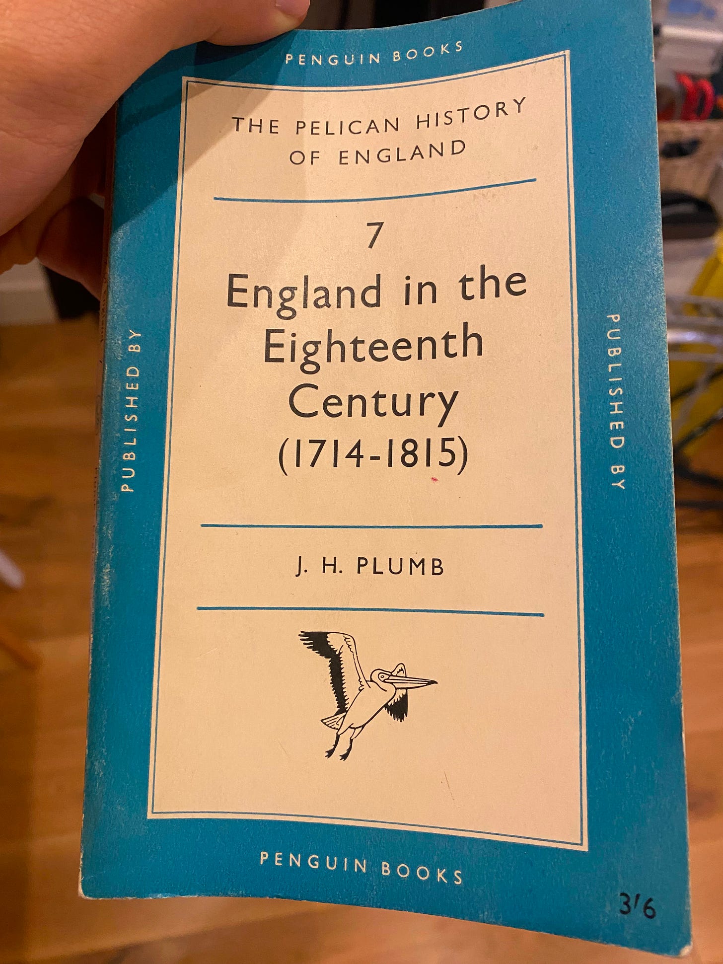 I’m reading Plumb’s 18th Century England about life under Sir Robert Walpole. It’s a bit weird reading it since the book was written in 1955, so it’s like a historical artefact writing about history.